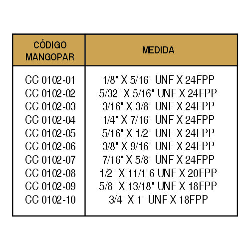 Tuerca para tubo de poliuretano y caño de cobre en pulgada